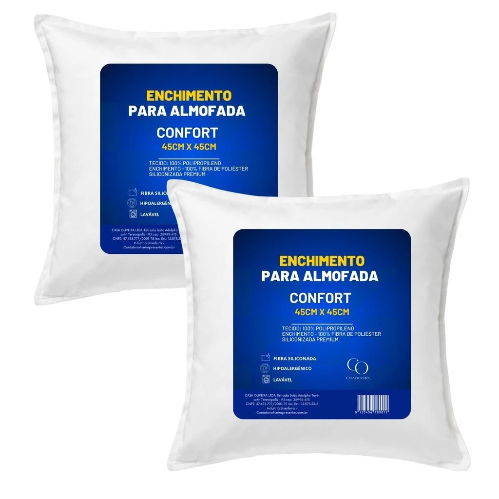 Traga aconchego ao seu sofá, poltrona ou cama com almofadas cheias, prontas para vestir suas capas 45×45. Produzidas em fibra siliconada de alta densidade, elas mantêm o volume mesmo após uso contínuo. Escolha o kit ideal para o seu ambiente — e perceba a diferença.