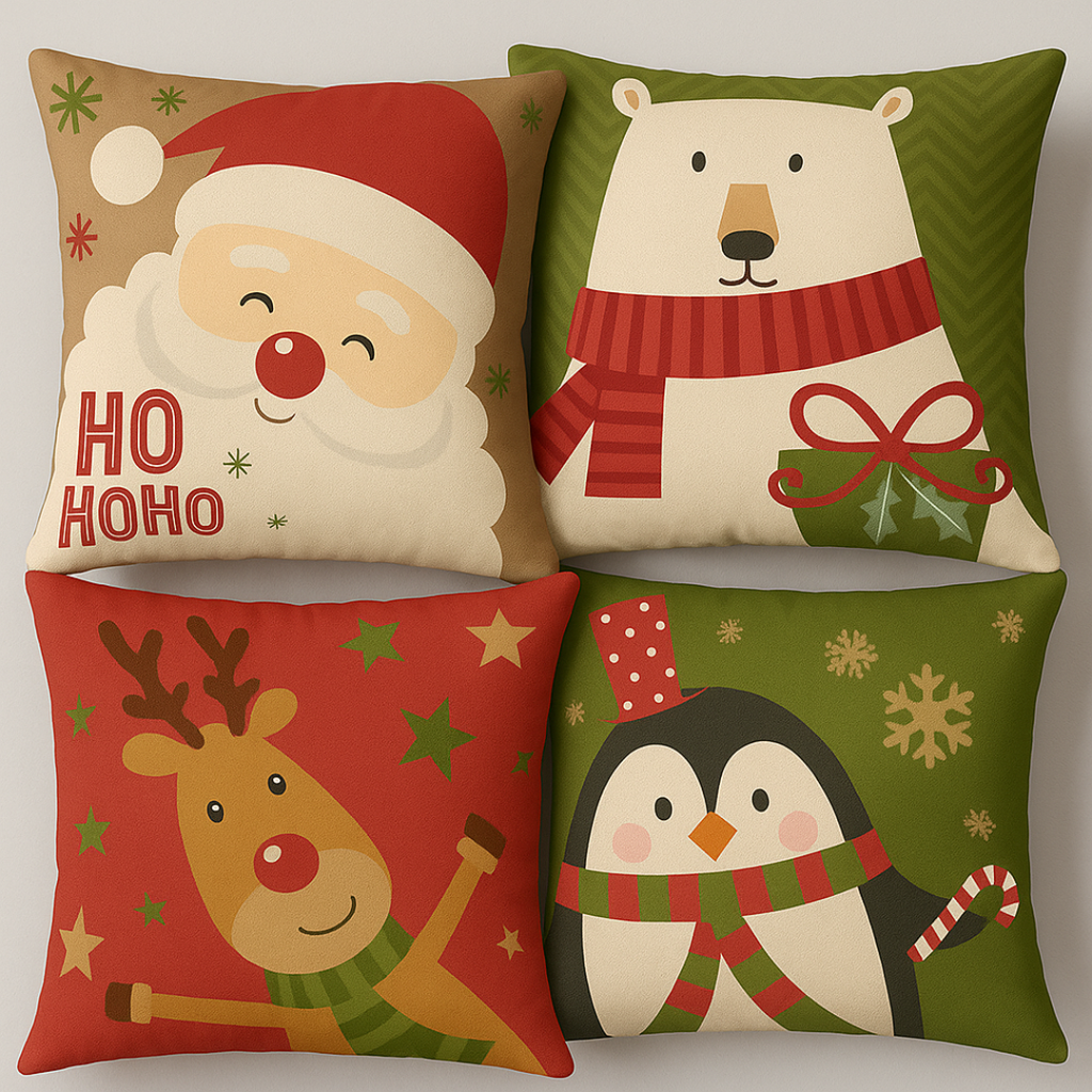 🎄 Kit 4 Capas de Almofadas Natalinas – Traga o espírito do Natal para sua sala!