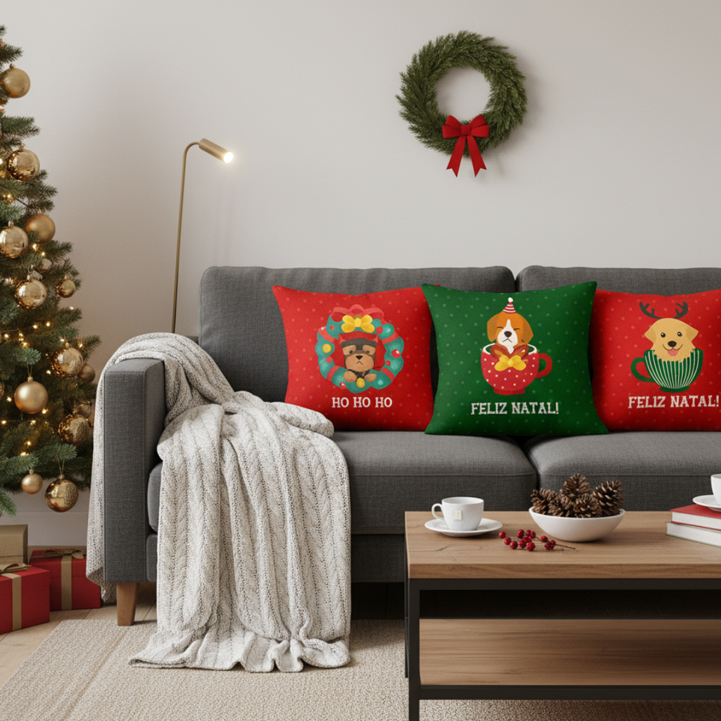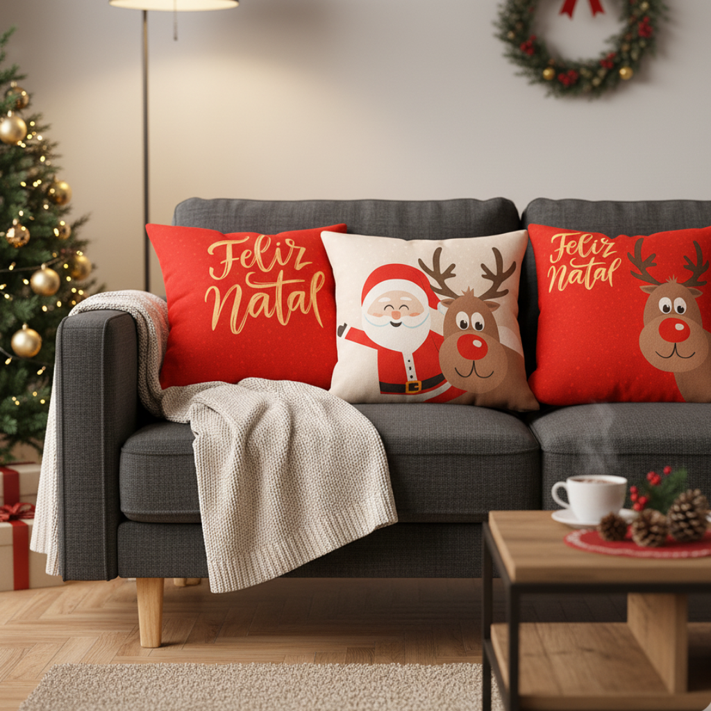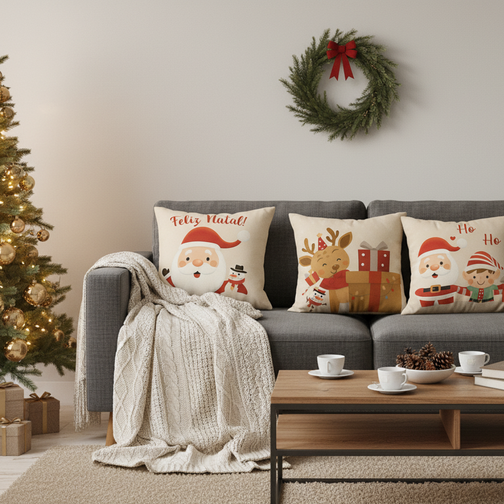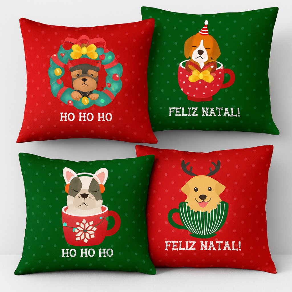Com estampas temáticas e toque suave, o Kit 4 Capas de Almofadas Natalinas é perfeito para deixar o ambiente mais alegre, acolhedor e cheio de magia para celebrar os momentos em família.