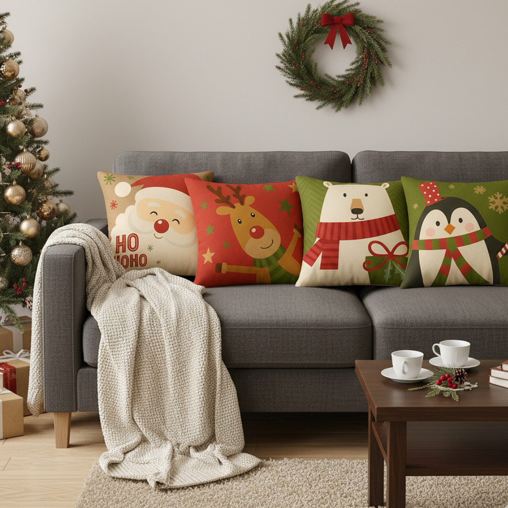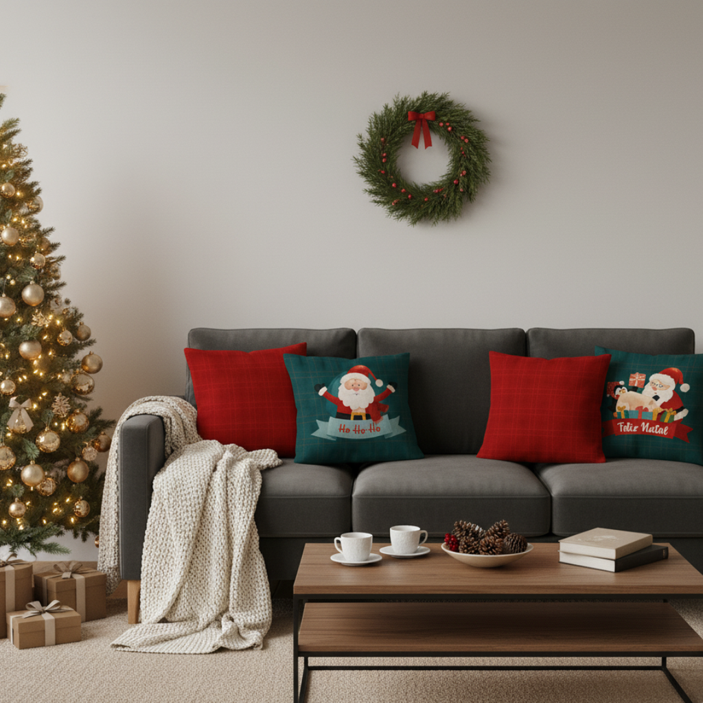 O Natal é feito de detalhes — e essas capas transformam o seu sofá em um cantinho encantado.