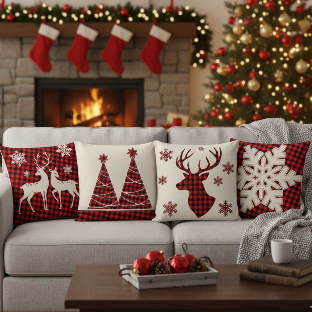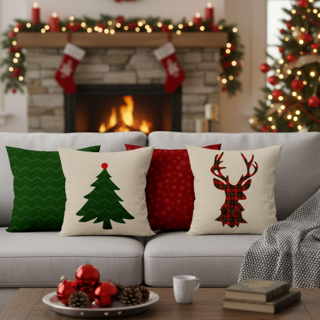 🎅 Kit 4 Capas de Almofadas Natalinas – 45x45cm
