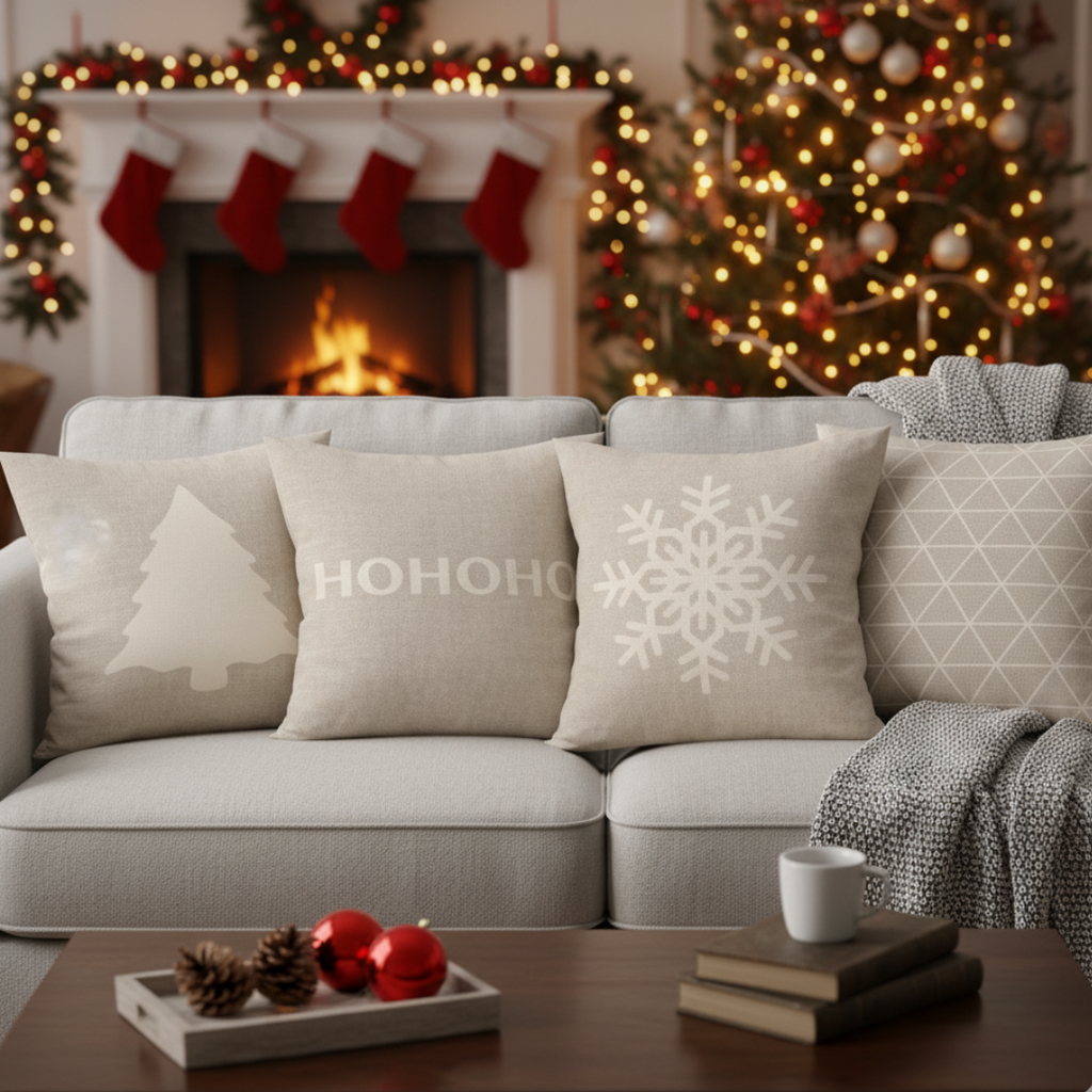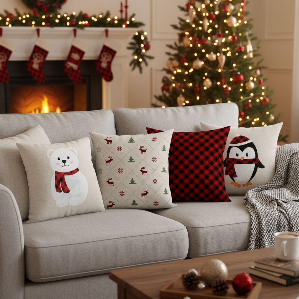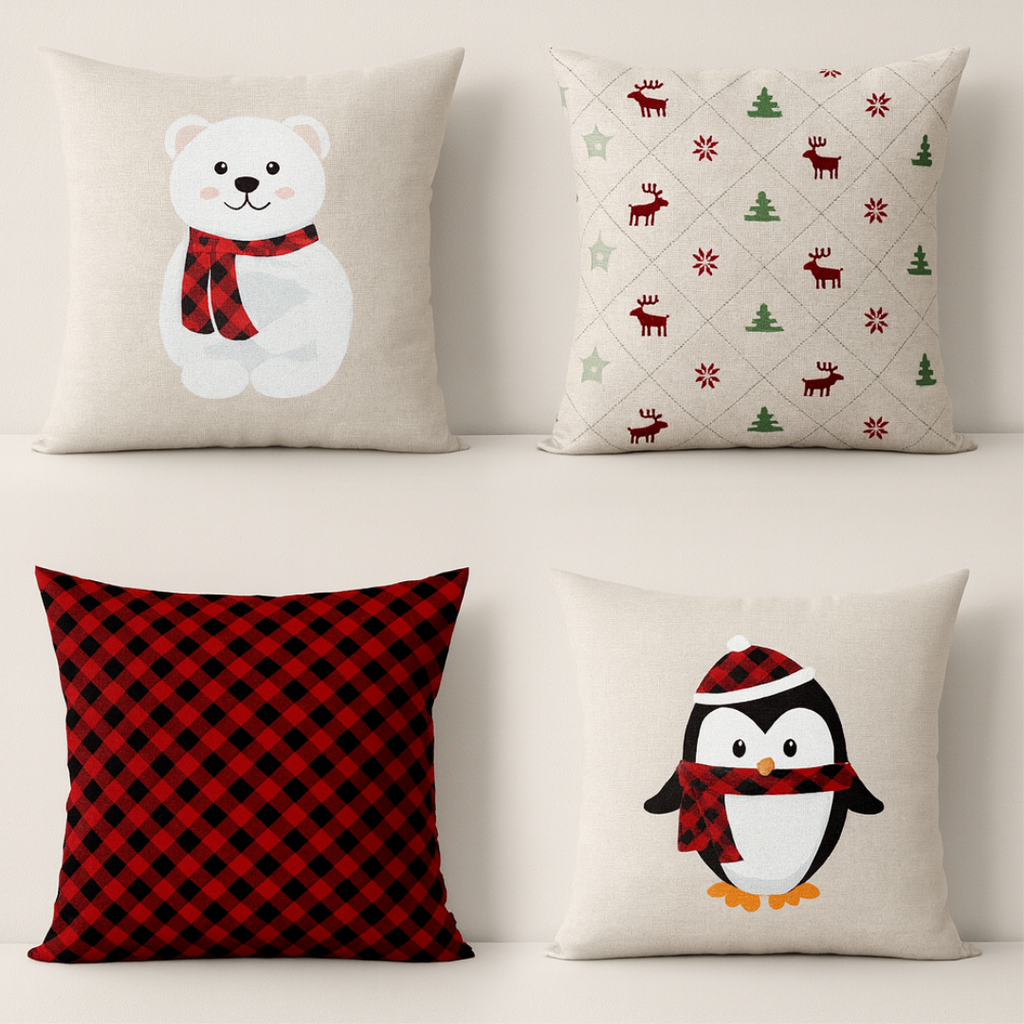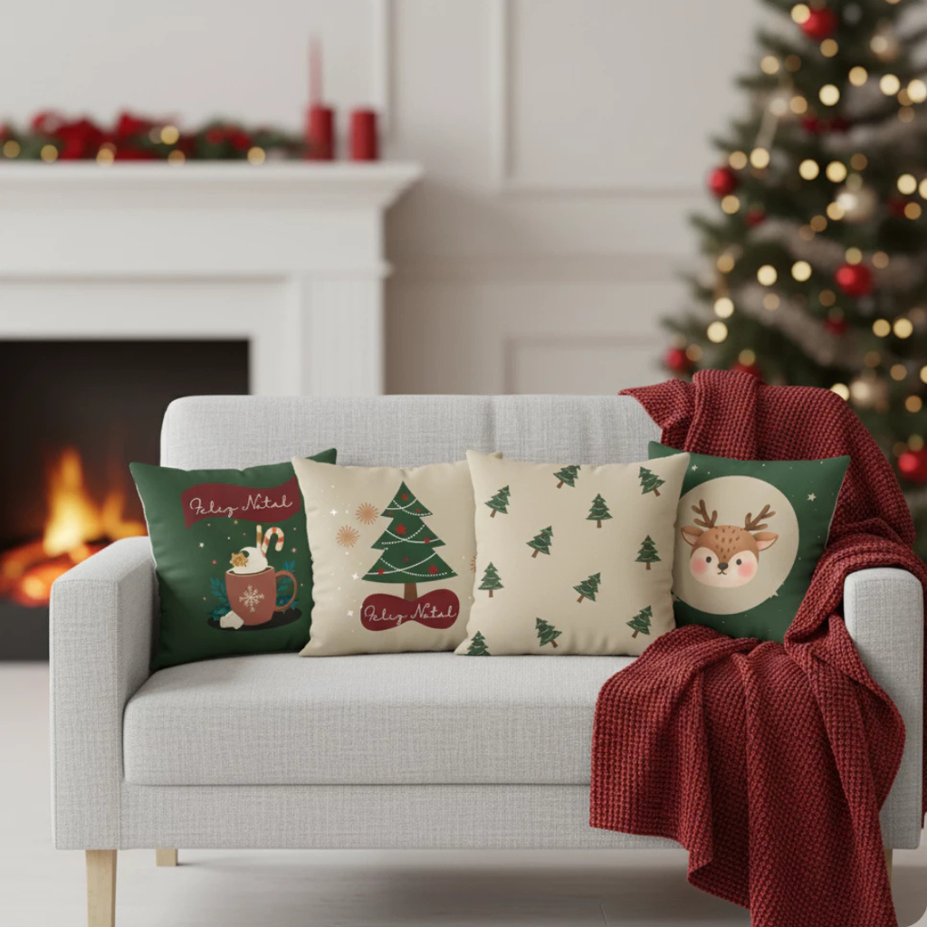 Transforme o clima da sua sala com esse conjunto encantador de capas de almofadas natalinas. Cada estampa foi pensada para trazer alegria, cor e aquele toque de carinho que torna o Natal ainda mais especial.