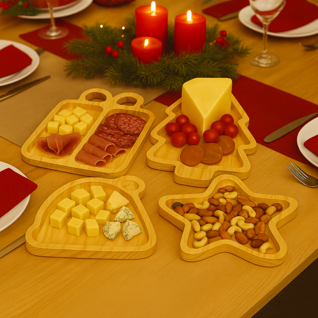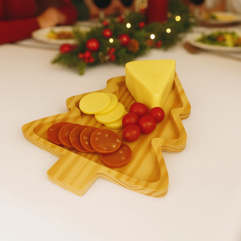 🎄 Tábua Petisqueira Natalina de Madeira Pinus – Mesa Posta Charmosa 🧡