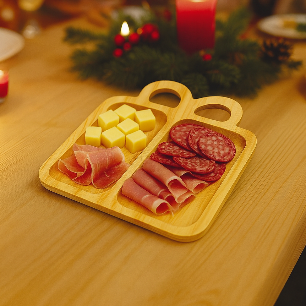 Traga o encanto do Natal para os momentos à mesa com a Tábua Petisqueira Natalina Flor Matriarca. Feita em madeira pinus natural, ela é perfeita para servir queijos, frios, frutas e petiscos com um toque festivo e acolhedor. Um detalhe simples que transforma qualquer refeição em celebração.